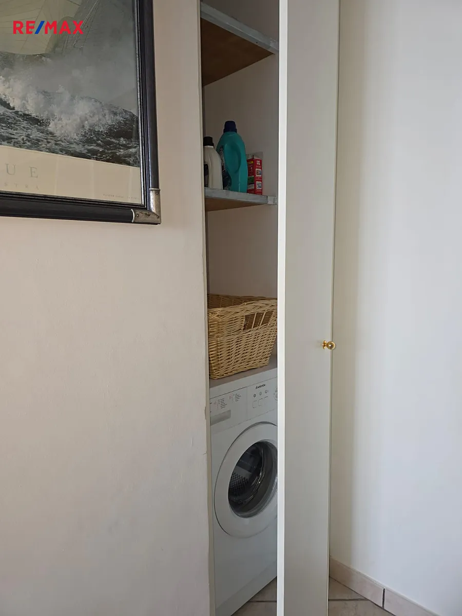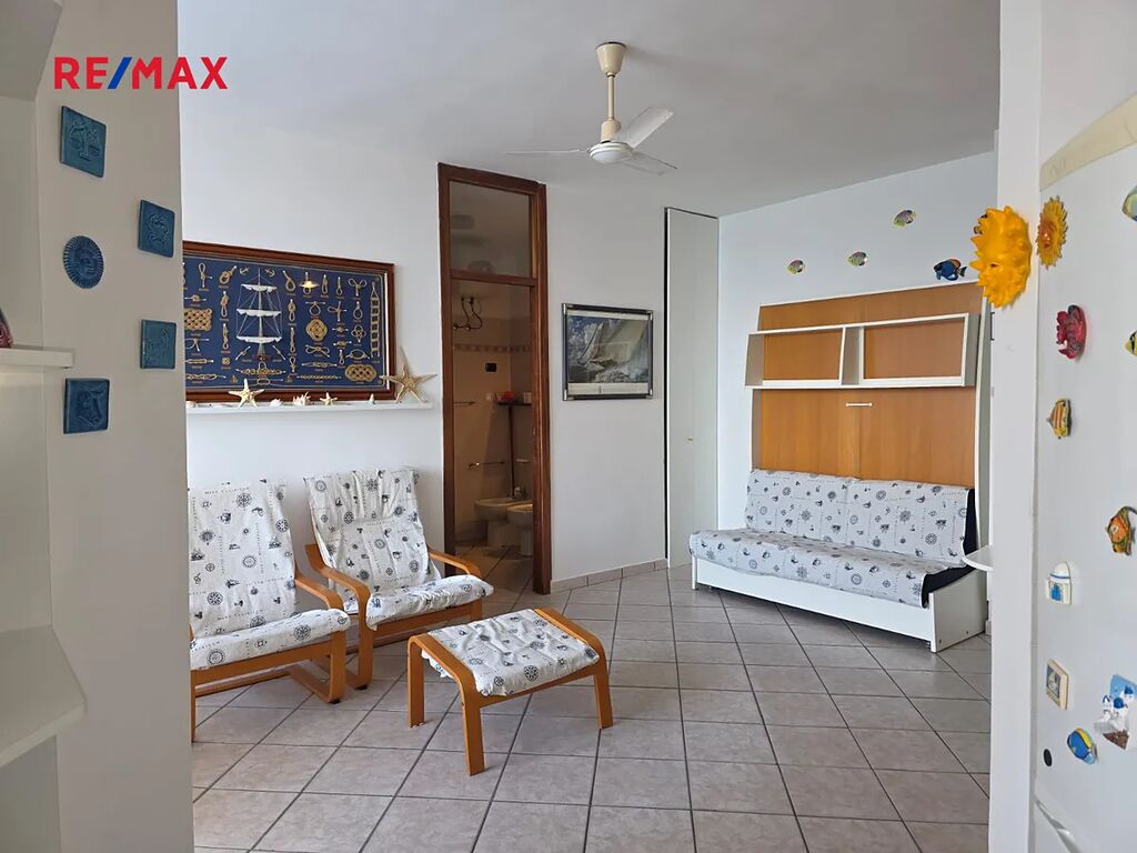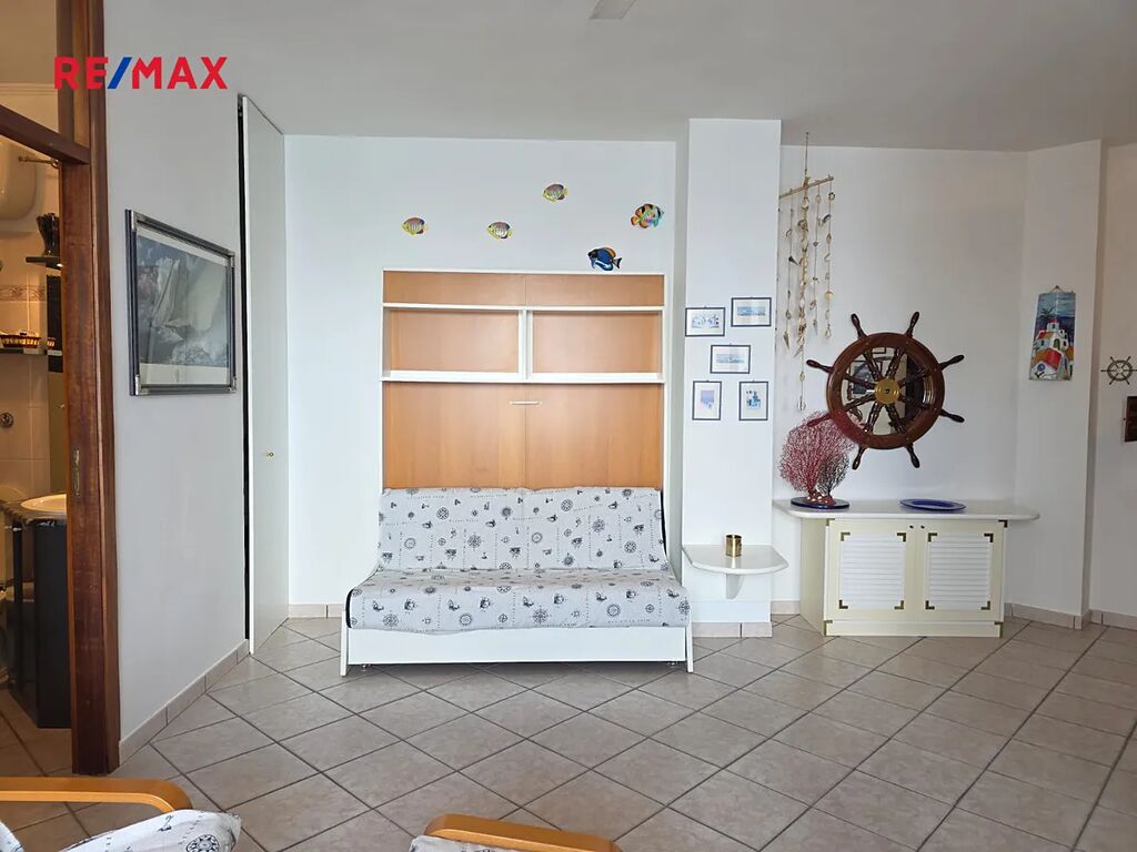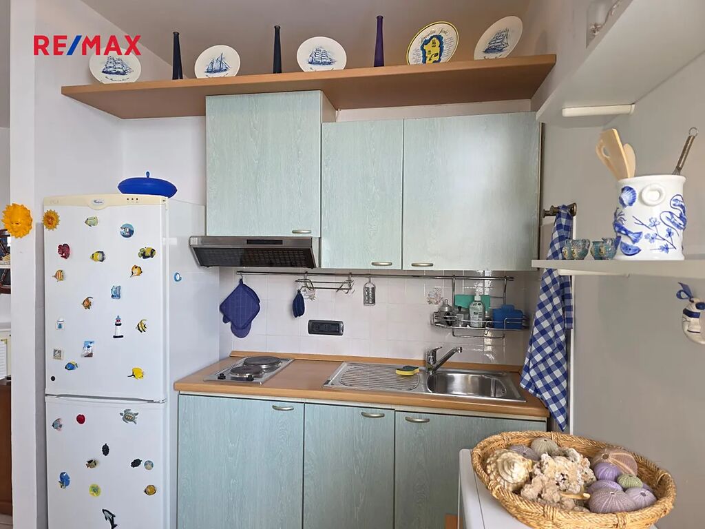 Velký obývací pokoj s kuchyňským koutem a pohodlnou rozkládací manželskou postelí; jednolůžková ložnice s palandou; technická místnost pro pračku; malý balkon s výhledem na nádherný záliv Teulada.
