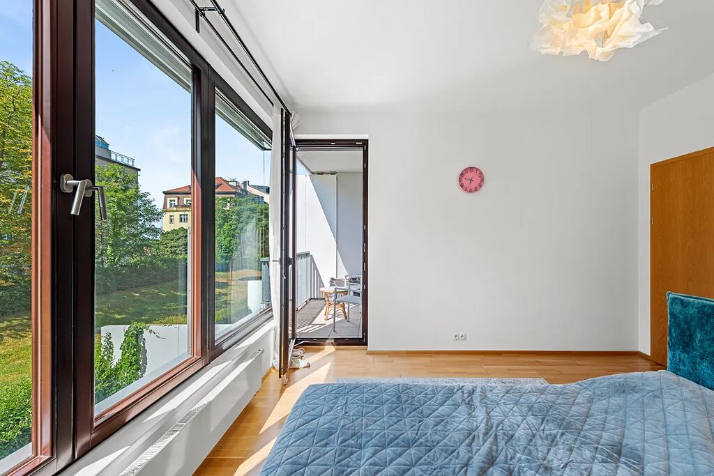 Nabízíme k pronájmu moderní a světlý byt o dispozici 3+kk a podlahové ploše 119 m² v prestižní Rezidenci Korunní. K bytu náleží balkon o velikosti 4 m² a předzahrádka o rozloze 44 m².