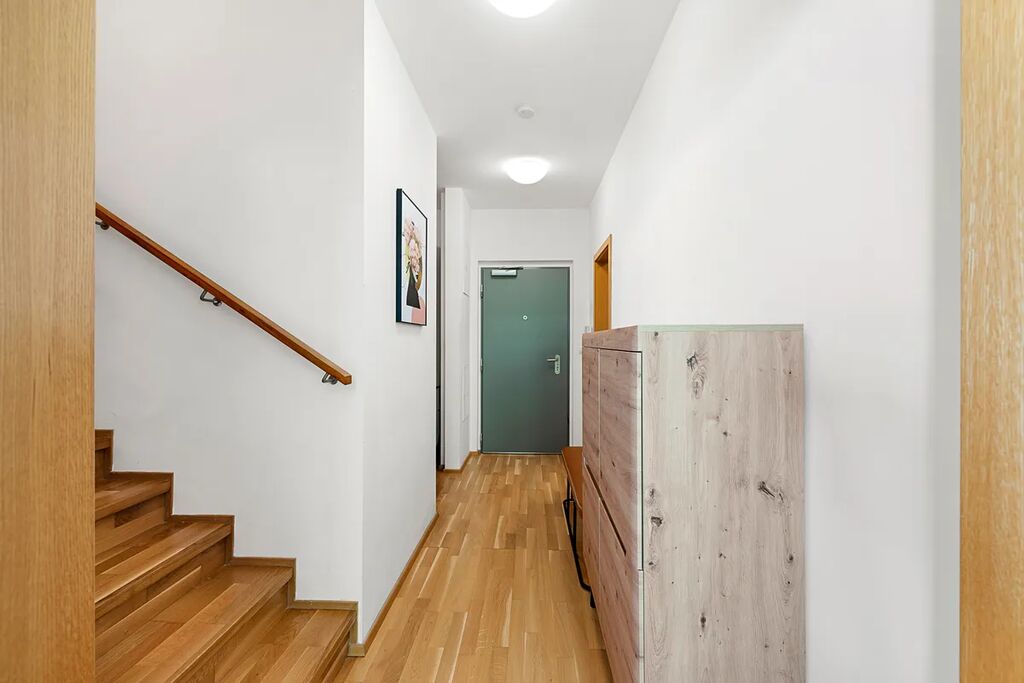 Pronájem krásného dvoupodlažního bytu 3+kk, 119 m² s balkonem, předzahrádkou, parkovacím stáním a sklepem – Rezidence Korunní, Korunní 108