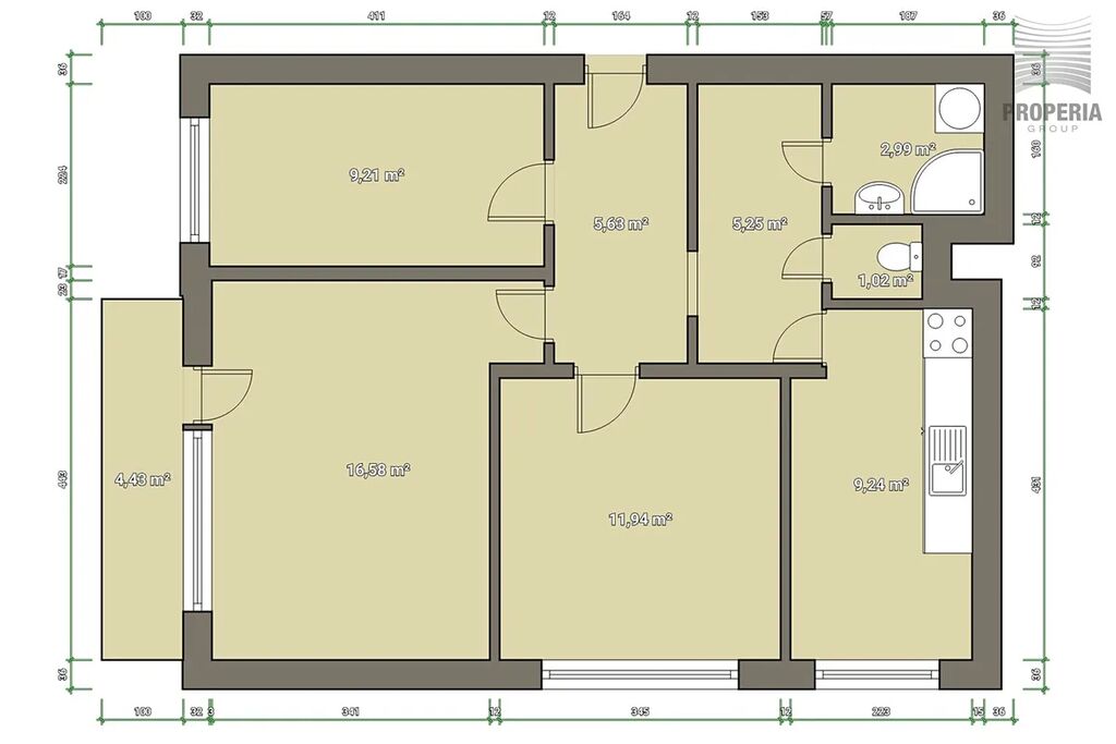 Nabízíme ke koupi byt v OV 3+1 s lodžií a výhledem do zeleně, ul. Josefy Faimonové, Brno-Líšeň. CP 67,3 m2 (z toho lodžie cca 4,4 m2 a sklep cca 1,5 m2), UP 62 m2, 1. p/8, výtah.