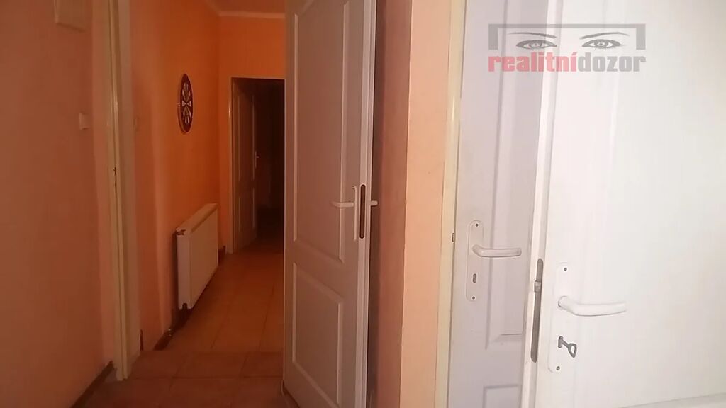 Ze společné chodby domu v 1NP je vstup do sklepních prostor 100 m2 nebo na menší pozemek za domem.