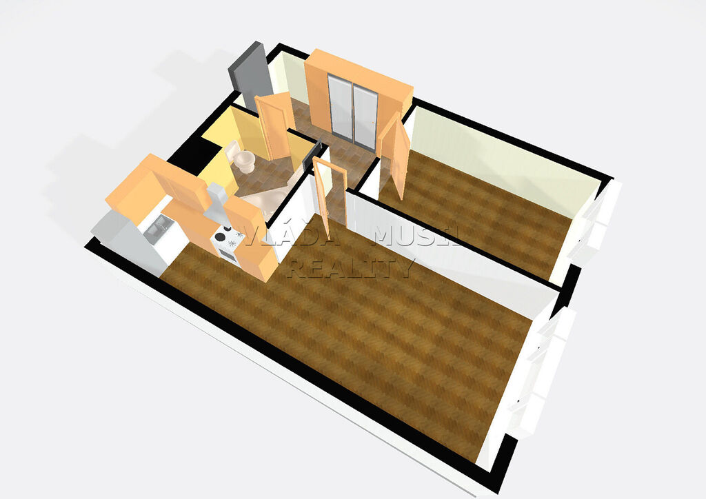 Byt o celkové rozloze 45 m² se nachází ve 4. patře šestipatrového panelového domu s výtahem a před časem prošel kompletní rekonstrukcí.