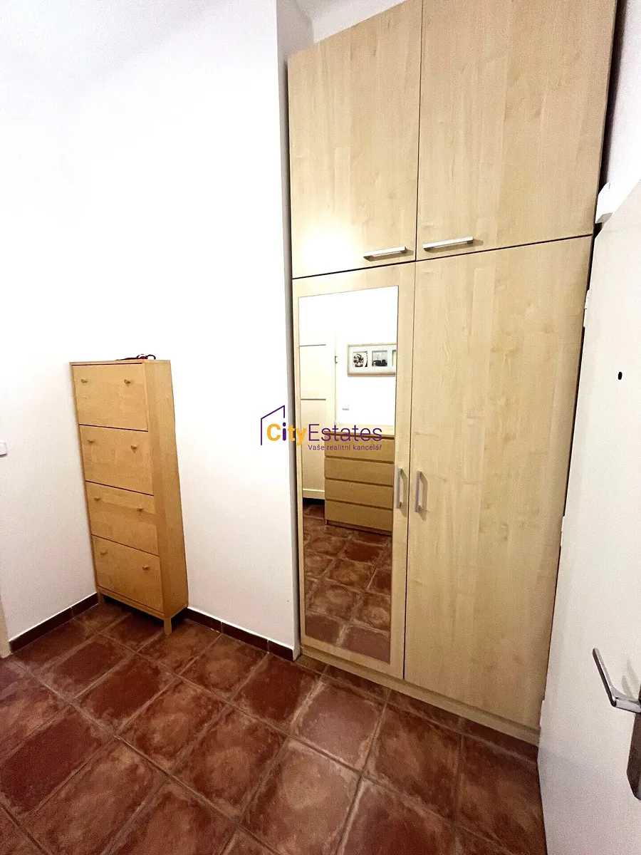 Po otevření dveří do bytu se ocitnete ve vstupní hale s vestavěnou skříní se zrcadlem, menší skříní a botníkem. Z chodby vedou 4 dveře. Jedny do plně vybavené kuchyně s ledničkou,troubou, mikrovlnkou, myčkou, pračkou a stolem a třemi židlemi. Další vedou do koupelny s vanou a umyvadlem. Třeti do obyváku s pohovkou, stolkem, dvěma křesly a pracovním koutem se stolem a křeslem. Z obyváku vstupujete do ložnice s postelí a velkou vestavěnou skříní. Čtvrté dveře vedou na samostané wc.