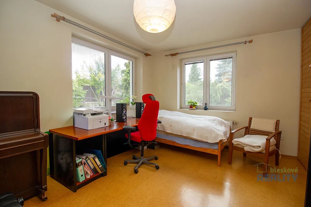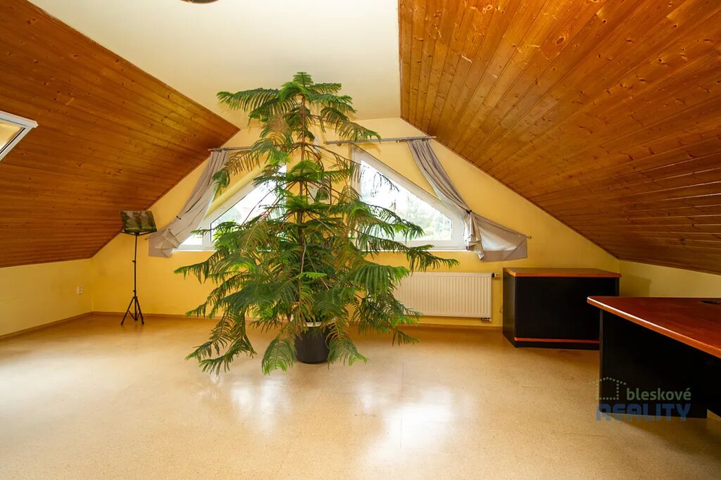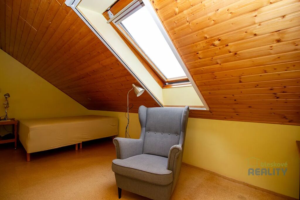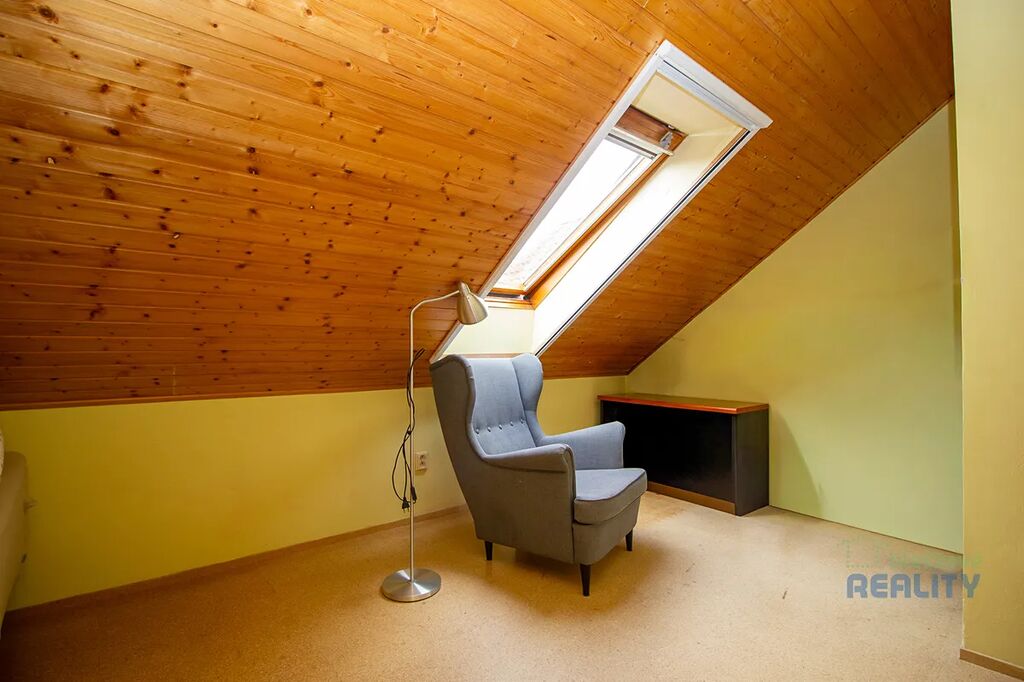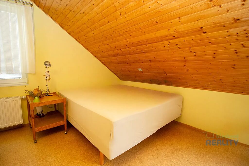 V patře jsou tři pokoje, hala, ložnice, koupelna a samostatné WC.