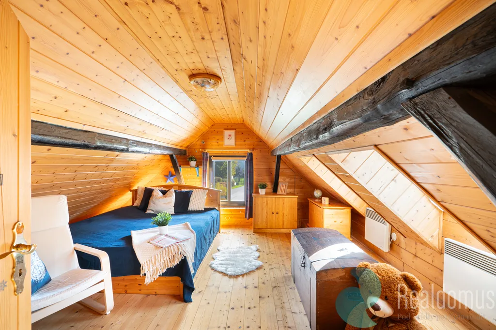 Dům je v přední části roubený, v ostatních částech je postaven z tradičních materiálů 1. pol. 20. století. Celkové pojetí je tak blízké tradičním domům stavěným v Čechách v dřívějších dobách a je v místě unikátní. Okna a vstupní dveře jsou plastová. Interiér domu je kombinací tradičních prvků jako např. nádherných kachlových kamen v obývací části nebo tradičních kamen v kuchyni a moderních prvků -rekonstruovaná koupelna, obložení dřevem. Nemovitost je určena k celoročnímu bydlení - je vedena jako rodinný dům.