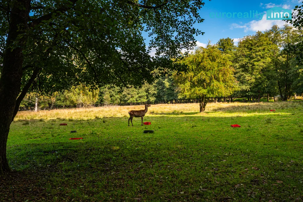 * Zabezpečení: Obora je kompletně oplocena robustním, originálním oborovým pletivem (výška 205 cm) ukotveným na betonových sloupech.