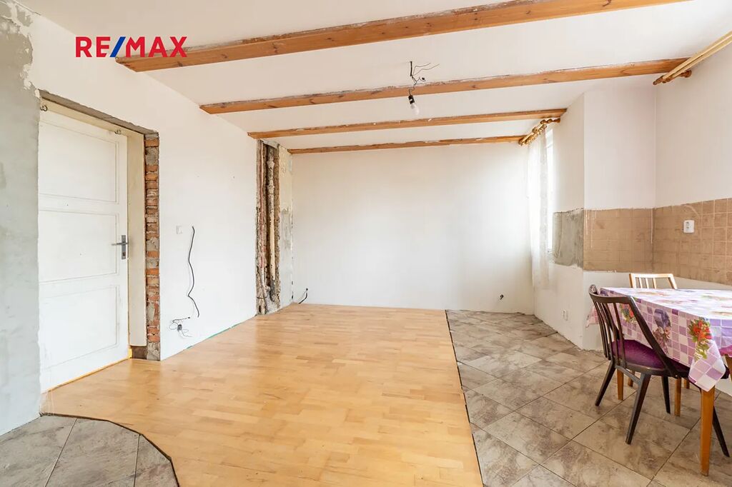 Ideální polovina domu o dispozici 3+kk s užitnou plochou 85 m2 je umístěna ve zvýšeném přízemí domu. Byt prošel částečnou rekonstrukcí, některé části nejsou ještě hotové, proto je možnost si prostor upravit podle svých přestav.