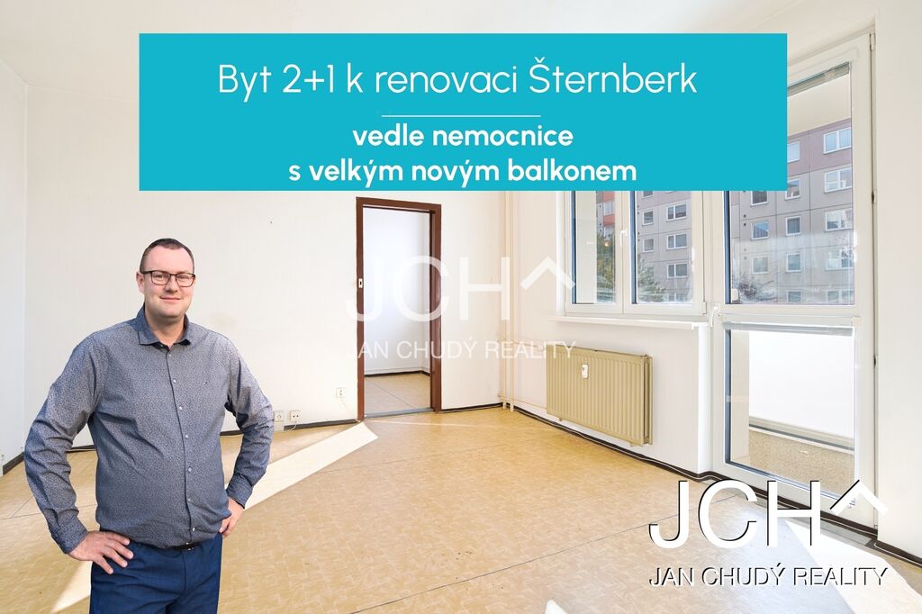Nabízíme k prodeji byt o dispozici 2 + 1, který se nachází ve skvělé lokalitě na ulici Jiráskova ve Šternberku. Byt má orientační výměru 43 m² + velký balkon + sklepní kóje a je situován ve třetím patře osmi podlažního panelového domu. Byt doporučujeme k renovaci, ať si ho připravíte podle vlastních představ a nápadů. Parkování přímo před domem.