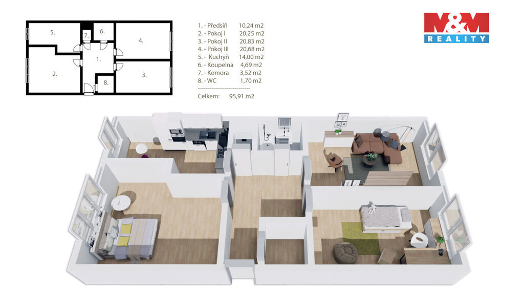Nabízíme k prodeji prostorný byt 3+1 o celkové užitné ploše 95,91 m² v jedné z nejžádanějších lokalit lázeňského města Poděbrady, jen pár kroků od kolonády.