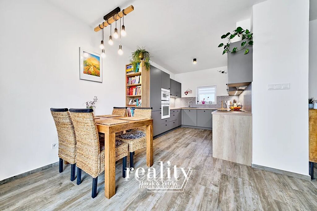 Kromě prakticky řešené kuchyňské linky s vestavnými spotřebiči je byt zařízen potřebným nábytkem. Jeho moderní design a praktické uspořádání bytu zaručují pohodlné bydlení pro rodinu s dětmi či pár.