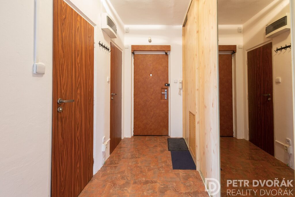 Byt je ve velmi dobrém stavu a nabízí příjemné bydlení s dostatkem úložných prostor. Je částečně zařízen – kuchyňská linka je vybavena sklokeramickou varnou deskou, elektrickou troubou, myčkou, lednicí a digestoří, v předsíni se nachází vestavěná skříň, v koupelně pračka. Podlahy tvoří plovoucí podlaha a dlažba, vytápění a ohřev vody jsou centrální.