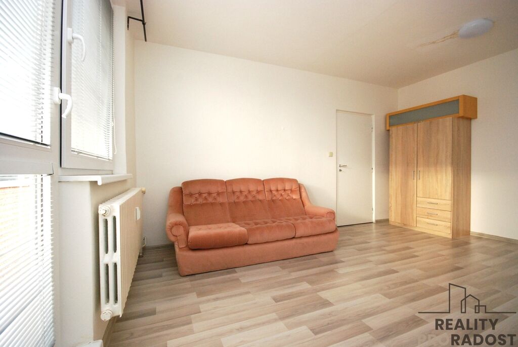 Dispozice bytu: vstupní chodba, koupelna se sprchovým koutem, umyvadlem, WC a místem na pračku, kuchyně, ložnice se vstupem na balkon. Byt je částečně vybavený – v ložnici se nachází šatní skříň a pohovka, v kuchyni kuchyňská linka s troubou a sklokeramickou varnou deskou (bez lednice).