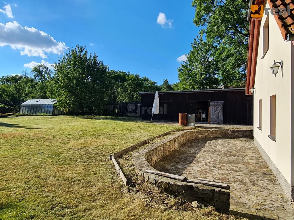 Na zahradě je nově vybudovaná garáž 40 m2 s velkým úložným prostorem na zahradní stroje, motorky a nářadí. Mimo to u přední části domu stojí nově postaveny kůlničky v top stavu, které mají využití jako úložné prostory. Za domem jsou další kolny dřevěné a skleník. Kolem domu kamenný chodníček s terasou.