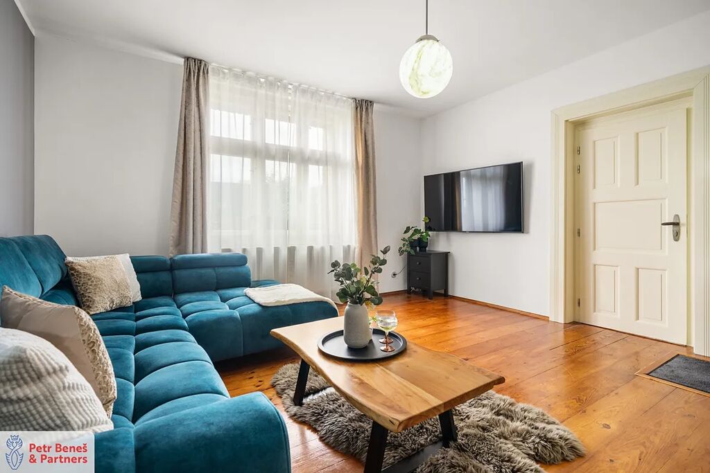 Byt prošel citlivou rekonstrukcí, při níž byly použity kvalitní trvalé materiály. Najdete tu pravé dřevěné podlahy, které provázejí celý interiér a dodávají mu hřejivý charakter. Renovovaná fasáda, špaletová okna - vše působí čistě, elegantně a připraveně k okamžitému bydlení. Interiér nabízí dostatek prostoru pro rodinu i každého, kdo chce žít s lehkostí, ale bez kompromisů. Vysoké stropy, světlo a pocit vzdušnosti vytvářejí domov, který má osobitý styl i přirozenou harmonii.