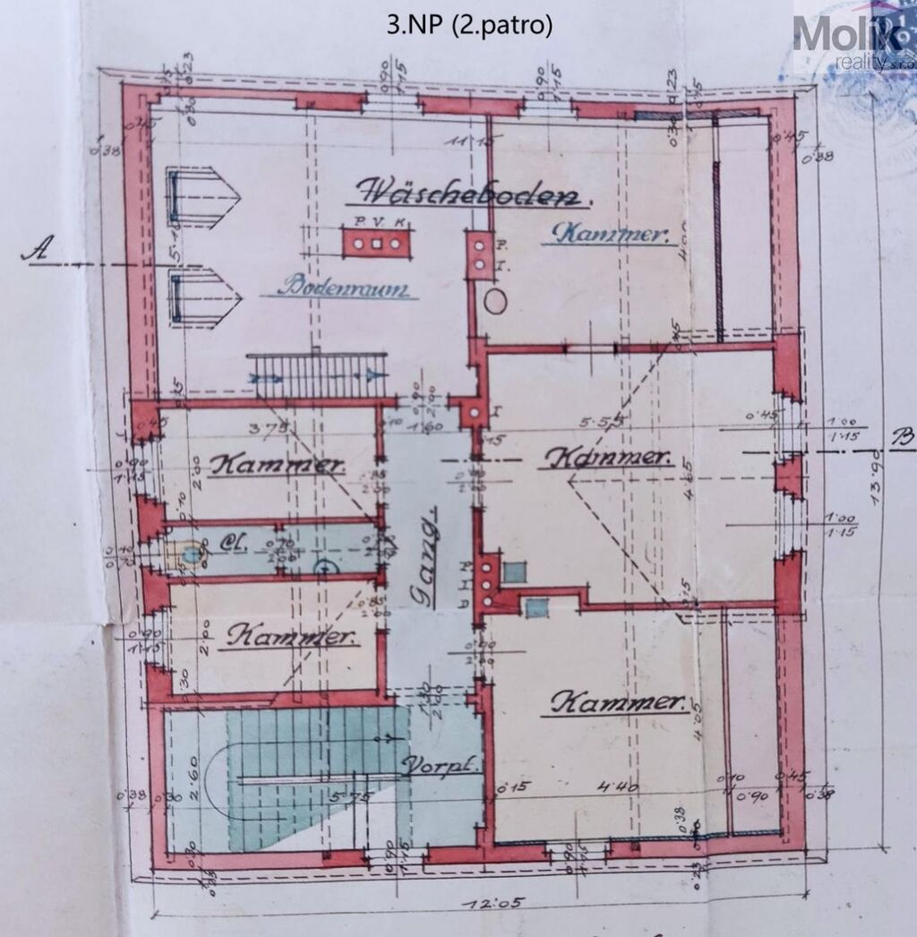 3. nadzemní podlaží (5 místností) a půdní prostory jsou připraveny k rekonstrukci dle představ nového majitele.