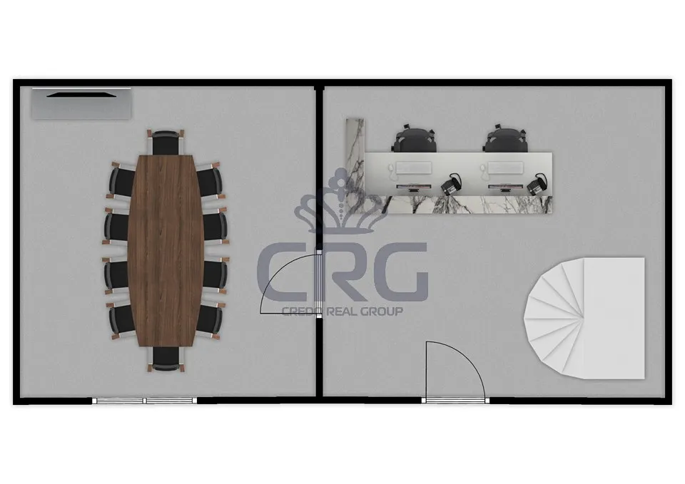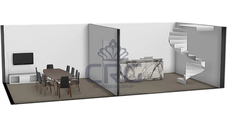 V přízemí vejdeme do vstupní haly, která přímo vybízí k vybudování recepce. Její celková plocha činí cca 17,22m2. V této části je jedna samostatná kancelář o cca 14,43m2, která by byla ideální zasedací místností, ale i klasickou kanceláří nebo obchodním místem.