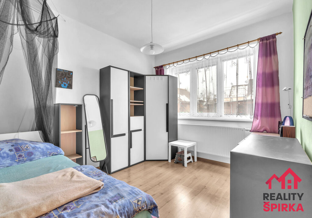 V přízemí zádveří, předsíň, chodba, prostorný obývací pokoj s jídelnou a kuchyní, dvě dětské ložnice, hlavní ložnice, velká koupelna s rohovou vanou i sprchou, WC a spižírna.