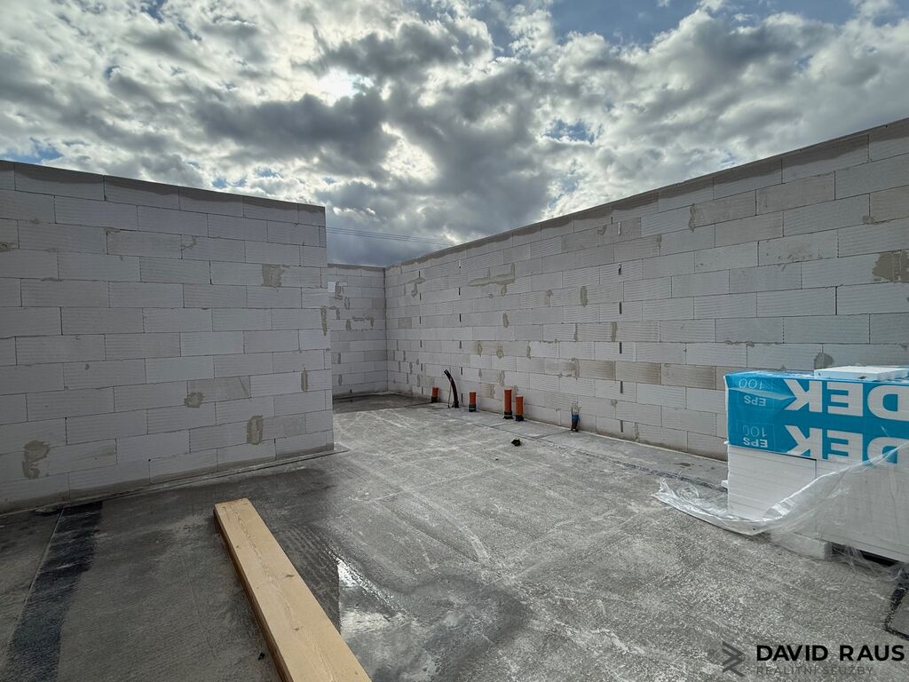 Rodinný dům o podlahové ploše 175 m² je ve fázi výstavby a je jeden ze čtyř nízkoenergetických rodinných domů na ulici Syrovická, v Rajhradě.