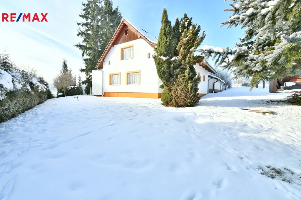 Na zahradě se nachází okrasné dřeviny a ovocné stromy. Za domem je k dispozici přístřešek na dřevo či zahradní náčiní. Navazující pozemek o rozloze 3 849 m² je využíván jako louka, ale lze jej využít dle potřeby – k pěstování, chovu zvířat, rekreaci či pronájmu.
