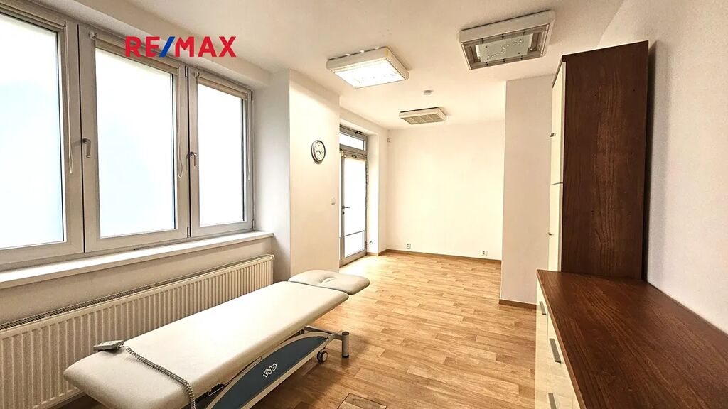 Jednotka má dva vchody, jeden z ulice, druhý z vnitřku domu a je velmi prakticky provedená. Sestává z prostorné předsíně, samostatné místnosti, kde je nyní umyvadlo, je možné zde udělat kuchyňský kout a samostatné toalety s umyvadlem a sprchou. Jednotka je hezky prosvětlená, díky velkým oknům a skleněným dveřím. Na oknech i dveřích je kromě rolety i diskrétní fólie, díky které do jednotky z klidné ulice není vidět.