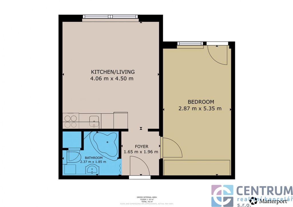 Byt je tvořen vstupní chodbou, jedním samostatným pokojem, koupelnou s toaletou a dalším pokojem s kuchyňským koutem. K bytu náleží také nově zasklená lodžie, která poskytuje příjemné místo k posezení, a sklepní kóje umístěná v suterénu domu. Byt nabízí klidné a příjemné bydlení v blízkosti přírody a přitom s výbornou dostupností do centra města, ideální pro jednotlivce či pár.