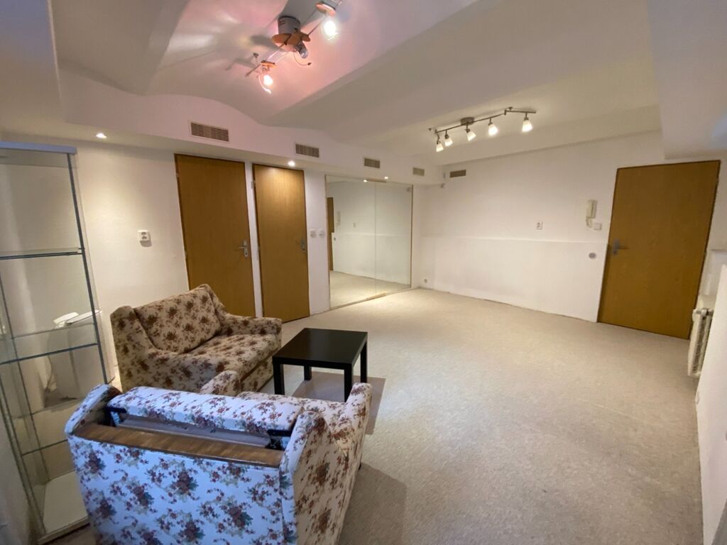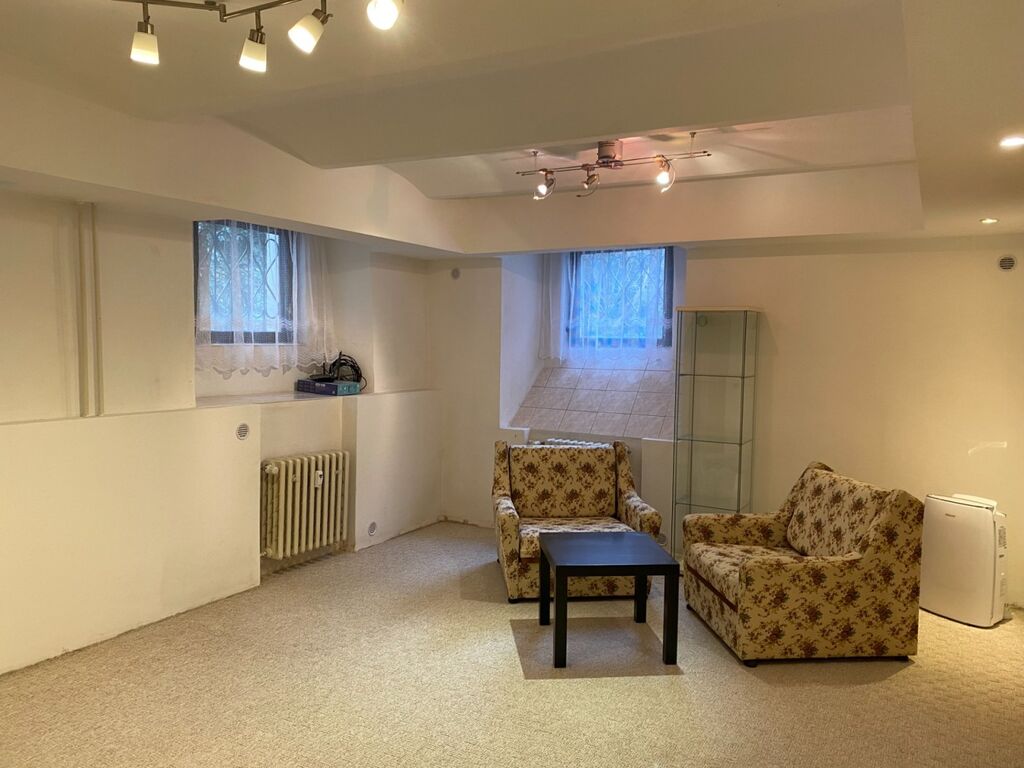 Nabízím k pronájmu suterénní 1+1 s šatnou a velkou komorou, v Široké ulici, v Českých Budějovicích. Ideální pro mladé lidi, kteří chtějí být v centru města. Prostor je umístěn v 1.P.P. v historickém domě s okny do klidné dvorní části - zahrady. Dispozičně je prostor řešen velmi dobře. Z předsíně je vstup do šatny a dále do ostatních částí prostoru. Obývák s ložnicí je jedna velká místnost a je částečně zařízená. V koupelně je sprchový kout, umyvadlo a WC. Kuchyňka s jídelnou je samostatná místnost a je v ní umístěna lednice, sporák, mikrovlnka, komoda, jídelní stůl a židle. Nájem je možný od 1.11.2025 a dlouhodobě. Záloha na služby (el., topení, voda, atd.) je 3 000,-Kč za měsíc. Kauce je stanovena na 14 000,-Kč