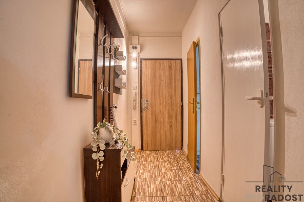 Dispozice bytu je řešena prakticky: po vstupu do prostorné chodby s vestavěnými skříněmi se vlevo nachází kuchyně propojená průchodem s obývacím pokojem. Vpravo od chodby jsou umístěny dva samostatné pokoje, z nichž jeden má přístup na lodžii, ideální pro relaxaci.