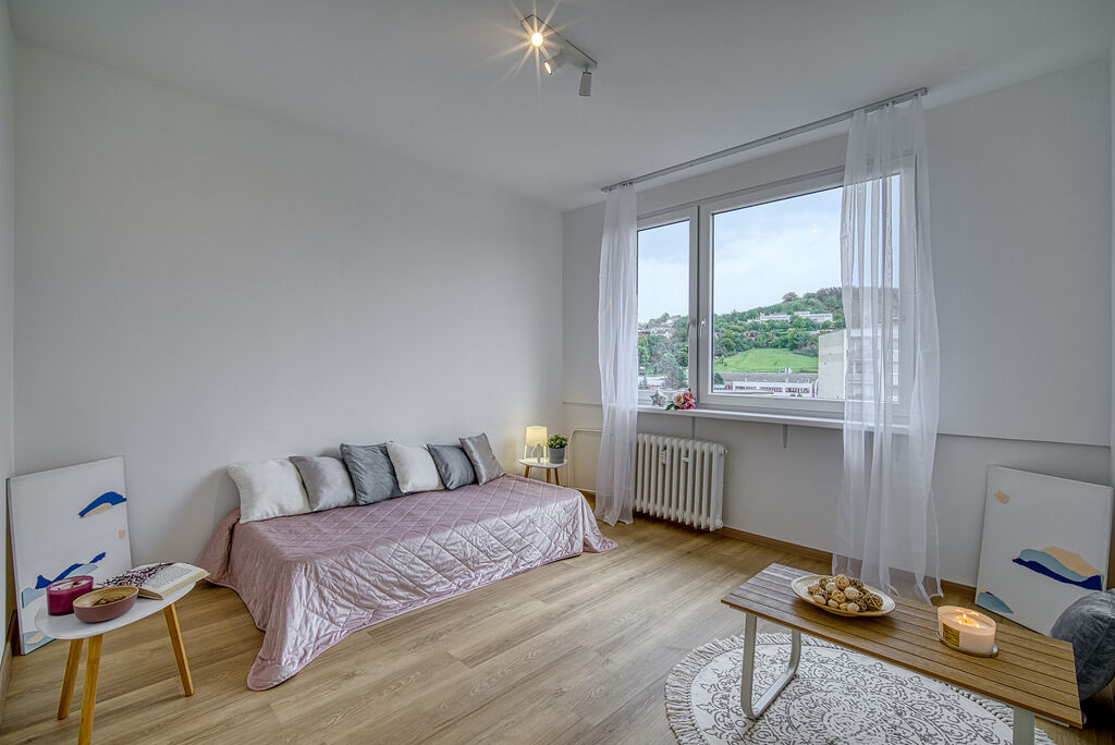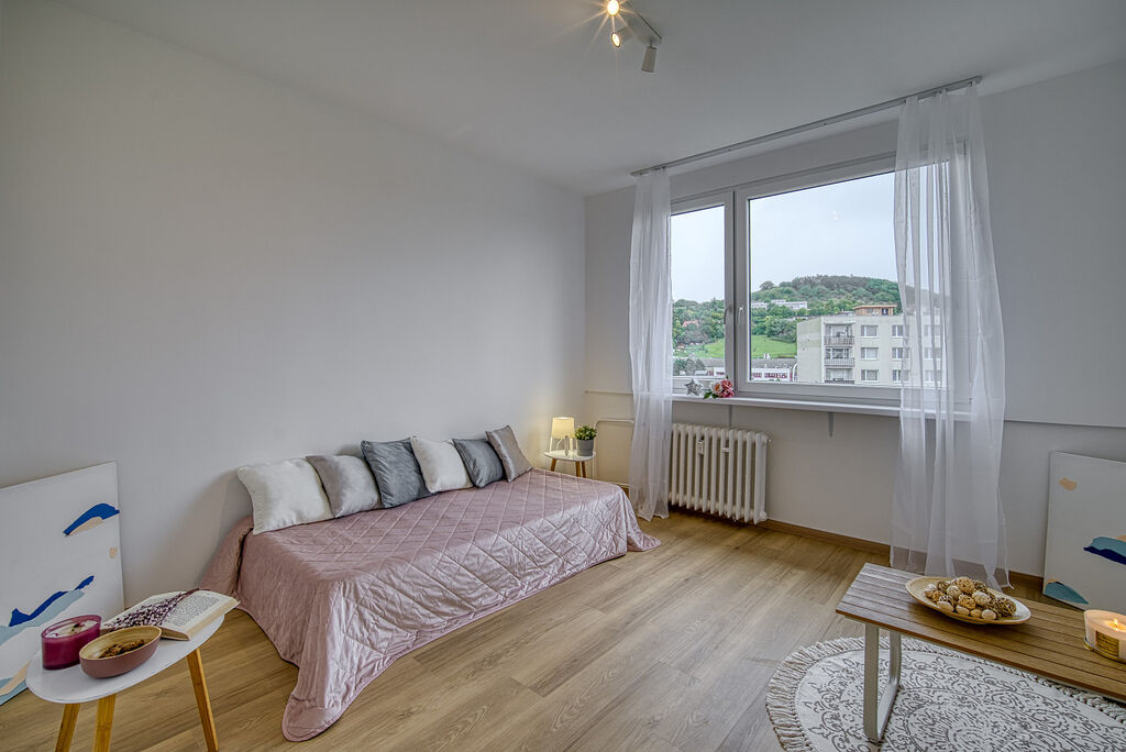 Nabízíme k pronájmu krásný byt 3+1 s lodžií a po kompletní rekonstrukci. Byt se nachází v 7. nadzemním podlaží (6 patro) panelového domu s výtahem a disponuje novou kuchyňskou linkou s indukční varnou deskou, elektrickou pečící troubou, myčkou a digestoří. V koupelně se nachází sprchový kout, umyvadlo se skříňkou, koupelnová skříňka se zrcadlem a toaleta. Součástí pronájmu je i sklepní kóje. Byt není vybaven nábytkem. Nájemné zde činí 15 000,- Kč, záloha na služby 2 500,- Kč pro 1 osobu + 500,- Kč každá další osoba. Vratná kauce je 30 000,- Kč. Při rezervaci se platí provize realitní kanceláři ve výši 18 000,- Kč. Elektřina se přepisuje na nájemce. Byt je volný ihned. V případě zájmu o prohlídku či více informací neváhejte kontaktovat makléře.