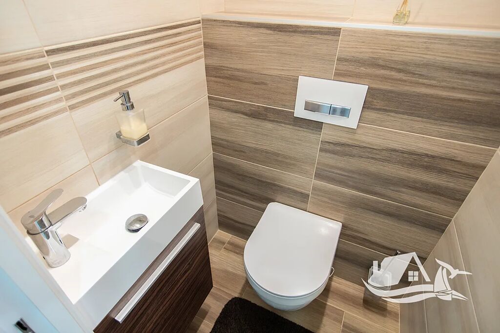Interiér bytu je navržen s citem pro detail a odolnost materiálů, v kuchyni i koupelně najdete luxusní obklady a sanitu, v obývacím pokoji a ložnicích kvalitní vinylovou podlahu, která si zachovává vzhled dřeva a přitom vydrží každodenní provoz.