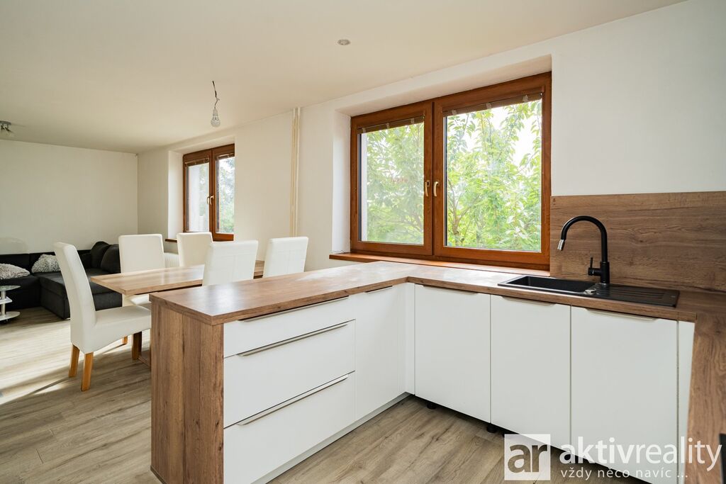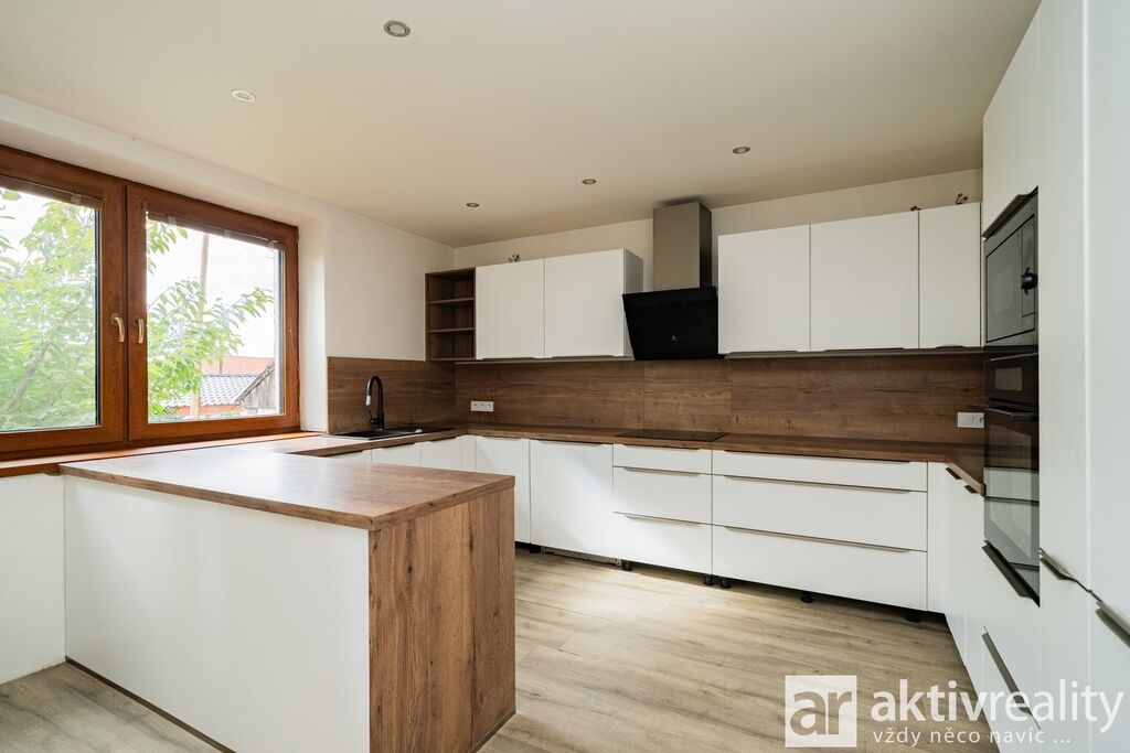 Prodej rodinného domu v klidné mělnické části Vehlovice. Nabízí velkorysý vnitřní prostor s dispozicí 4+kk, samostatnou garáž, a pořádně velikou zahradu, jakou u novostaveb jen tak nemáte. Stavba má za sebou už řadu nákladných investic a nyní hledá nové majitele, kteří vše dokončí. Podrobné informace o nabídce najdete na webu viz video. V přízemí se dnes bydlí. Otevřený obývací pokoj s kuchyní vznikl vybouráním příčky a tvoří přirozené centrum domu. Dále je zde samostatná ložnice, koupelna s vanou i sprchovým koutem, samostatné WC a prostorné zádveří. V 1. patře jsou dva velké pokoje, z jednoho je průchod do šatny. Třetí, menší místnost nyní slouží jako provizorní pracovna, ale může z ní být větší šatna nebo horní koupelna. Patro je rozpracované a čeká na dokončení dle projektu. Obytná plocha přízemí a patra má 138 m². Sklep pod celou plochou domu přidává přes 62 m² užitné plochy včetně techniky (zásobníky k tepelnému čerpadlu), místnosti pro pračku i sušičku, a velkého úložného prostoru. Mimo dům je navíc ještě zahradní sklep. Technika: kompletně nová elektroinstalace a rozvody, plastová okna s trojskly, vytápění tepelným čerpadlem (instalace před 4 lety) a krbem s vložkou, vyvložkovaný komín, rozvody tepla do patra, rozvody LAN. Zahrada je rozlehlá a soukromá, s travnatou plochou, zapuštěným bazénem s krytím, dřevěnými boudami a samostatnou velkou garáží. Vehlovice nabízejí klid, autobusovou linku, místní hospodu, dětské a fotbalové hřiště i workout zónu. Za kopcem začíná přírodní park Rymáň a navazuje CHKO Kokořínsko. Podrobné informace o nabídce najdete na webu viz video.
