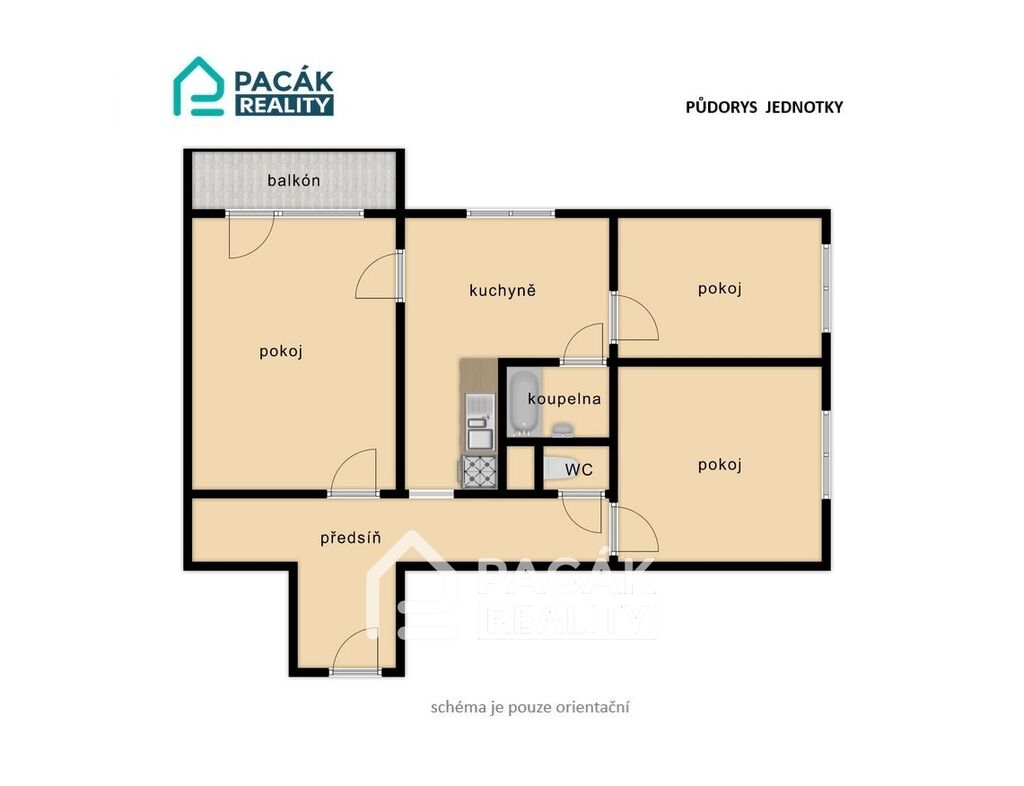 Byt je volný. Pronajímá se nevybavený, pouze kuchyňská linka se sporákem.