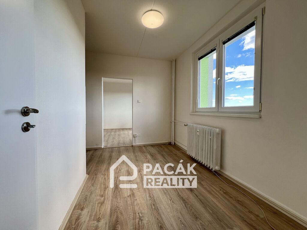 Byt právě prošel celkovou rekonstrukcí, která zahrnovala novou koupelnu s vanou, nové WC, položení plovoucí podlahy, nové dveře, čerstvá výmalba. Výhodou bytu jsou 3 neprůchozí pokoje. Dále velká lodžie a vzhledem k umístění v 8. podlaží je z ní pěkný výhled do okolí. Součástí pronájmu je sklepní kóje.