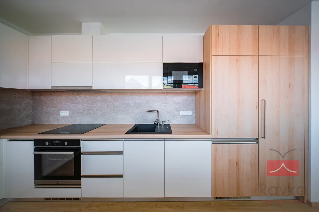 KAVKA REAL ESTATES Vám exkluzivně zprostředkují k pronájmu nový byt o dispozici 3+KK, užitné ploše 83,13 m² v centru města Humpolec. Byt se nachází v 3.NP třípodlažního nově realizovaného bytového domu o 6-ti bytech a je bez výtahu. U realizace tohoto objektu je kladený důraz na moderní a pohodlné bydlení v centru města Humpolec. Dispoziční členění: vstupní chodba, koupelna (vana), samostatné WC, kuchyň + obývací pokoj, pokoj č.1, pokoj č. 2. Součástí bytu je společná terasa (6,87 m2) s nádherným výhledem do okolí a sklepní kóje v suterénu bytového domu. Dále je zde možnost pronájmu venkovního parkovacího stání. Vytápění a ohřev vody je řešeno kondenzačním plynovým kotlem (podlahové vytápění) v kuchyni je ohřev vody řešen přes průtokový ohřívač. Nízké provozní náklady. Velmi dobrá lokalita. Kolaudace 2025. Veškerá občanská vybavenost nedaleko bytu. V případě zájmu o více informací či prohlídku kontaktujte makléře společnosti.