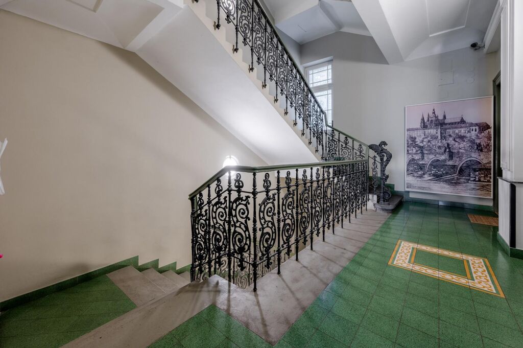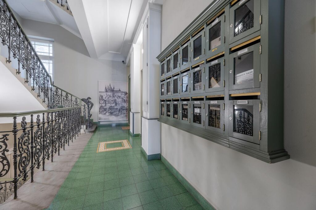 Po vstupu do činžovního domu vás uvítají působivé vnitřní prostory s nově obnovenými historickými prvky. Na první pohled vás upoutá schodiště s původním zdobným zábradlím, dvoukřídlé dveře, poštovní schránky a okenní vitráže.