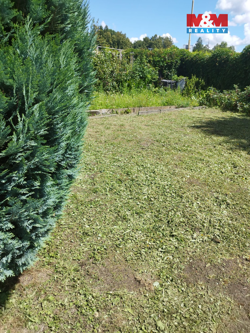 Pozemek je rovinatý, oplocený. Na zahradě je dřevěná chata.