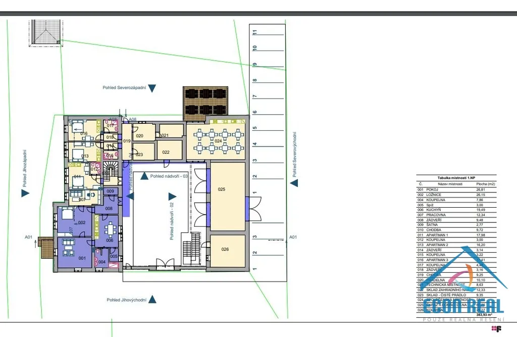 Možnost převzetí i zahradní techniky. Také budou zanechány stavební "schozy", čerpadlo - nautila a elektromagnetické filtry na vodu. Součástí prodeje je i studie řešení, návrh energetické nezávislosti stavby a vydaný projekt na dokončení penzionu se správcovským bytem, 13 apartmány pro rekreační účely, společenským zázemím a zahradou.