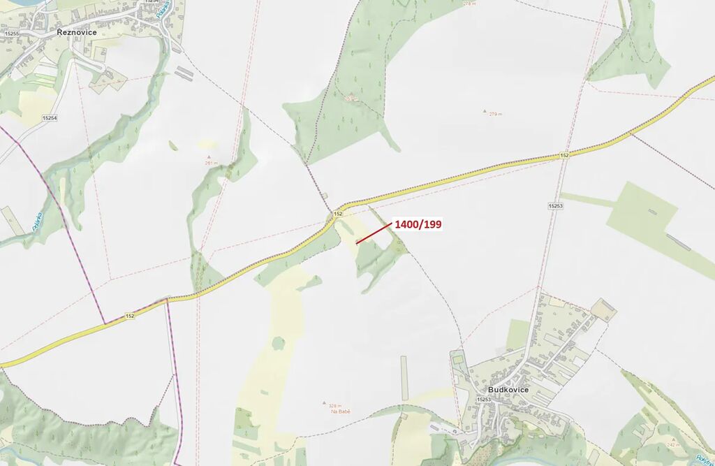 Lesní pozemek o výměře 16 m2, parcelní číslo 1400/199, podíl 1/1, katastrální území Budkovice, obec Ivančice, obec s rozšířenou působností Ivančice, okres Brno-venkov, Jihomoravský kraj.