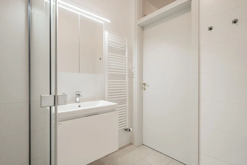 Byt se nabízí nezařízený, a interiér tvoří předsíň, světlý obývací pokoj s moderním kuchyňským koutem s vestavěnými spotřebiči (lednice s mrazákem, varná deska, trouba, myčka), dále samostatná ložnice, moderní koupelna se sprchovým koutem a toaletou. K bytu náleží sklep.