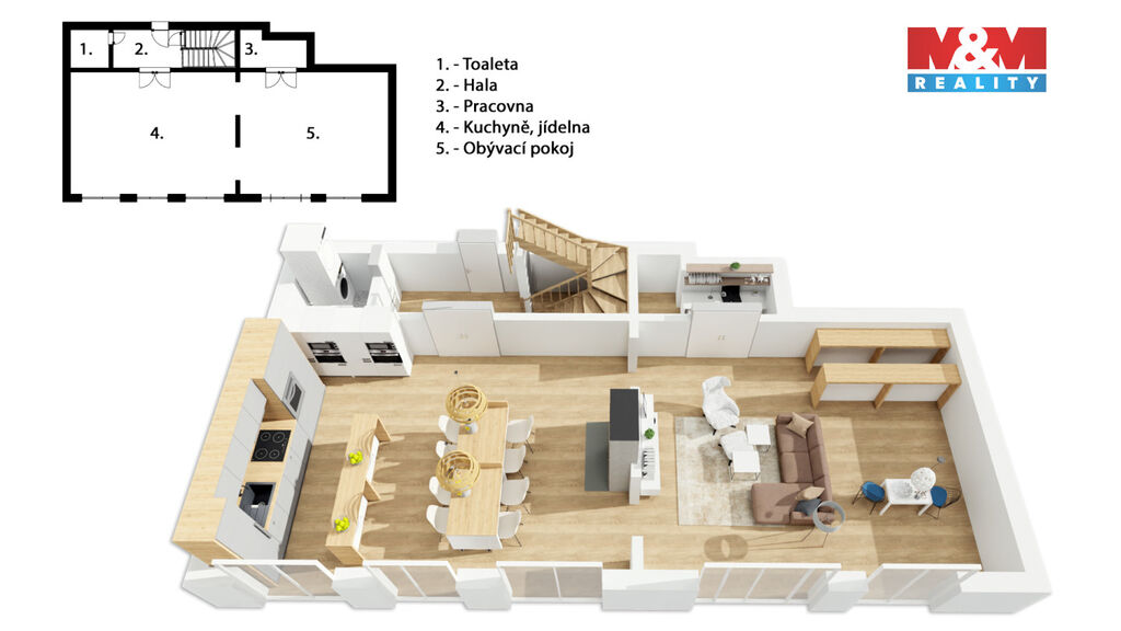 V zastoupení majitele nabízíme ke koupi výjimečný mezonetový byt nacházející se v přízemí a prvním patře udržovaného domu se zahradou a garáží.