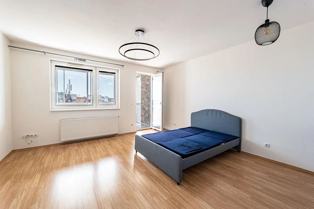 Dispozici tvoří obývací pokoj s designovým kuchyňským koutem, vybaveným novou linkou a spotřebiči (lednice, mrazák, trouba, varná deska, myčka, digestoř), moderní koupelna se sprchovým koutem a WC. Byt je dále zařízen postelí, pračkou a prostornou šatní skříní na chodbě. K jednotce náleží prostorná zasklená lodžie o velikosti 9,1 m² a sklep v přízemí.