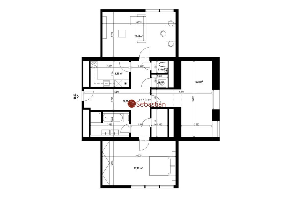 Celý byt prošel v předchozích letech rozsáhlou nákladnou rekonstrukcí včetně veškerých rozvodů. Tři prostorné samostatné pokoje, samostatné WC, krásná koupelna s vanou, sprchovým koutem a samostatná místnost s přípravou pro pračku. Moderní kuchyňská linka s varnou deskou, troubou prostorem pro vestavěnou myčku a ledničku. Připravené datové rozvody pro levné internetového připojení. Jedná se o velmi příjemný moderní reprezentativní byt. Společné části domu jsou monitorovány bezpečnostními kamerami. V domě dva výtahy, služba domovníka, v přízemí domu cukrárna, kadeřnictví, občerstvení atd. Vedle bytového domu nákupní centrum a veřejné parkoviště.