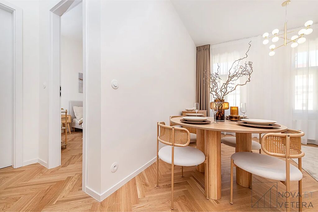 Vysoký standard kompletní rekonstrukce zahrnuje nové rozvody elektřiny, vody a odpadů. Dále rekonstrukce zahrnuje dřevěné parketové podlahy, kvalitní velkoformátové obklady a dlažbu od italského dodavatele MARAZZI. V koupelně a na toaletě naleznete sanitu značky GROHE. Moderní kuchyňská linka disponuje mimo jiné kvalitními spotřebiči značky BOSCH, kameninovou pracovní deskou na míru a zapuštěným granitovým dřezem.