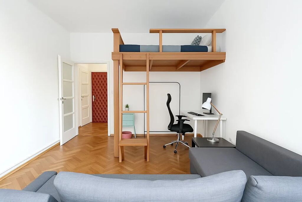 Nabízíme k pronájmu plně vybavený byt 2+kk o velikosti 46 m², který se nachází v prvním nadzemním podlaží bytového domu na Praze 8 v Libni.