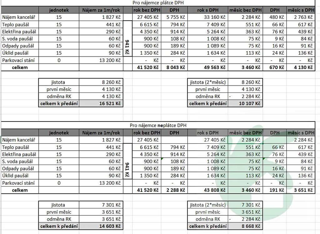 (cena bez služeb ve výši 941,- Kč/m2/rok)