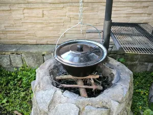 K penzionu náleží zahrada s venkovním posezení, gril, ohniště, dětské hřiště, parkování na pozemku.