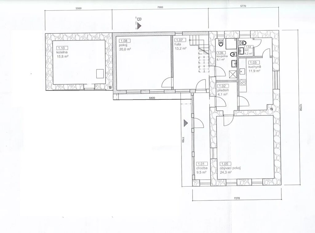 Dům stojí v dostatečné vzdálenosti od jediného souseda a nabízí tak uvolněné a klidné fungování rodinného i běžného společenského života.