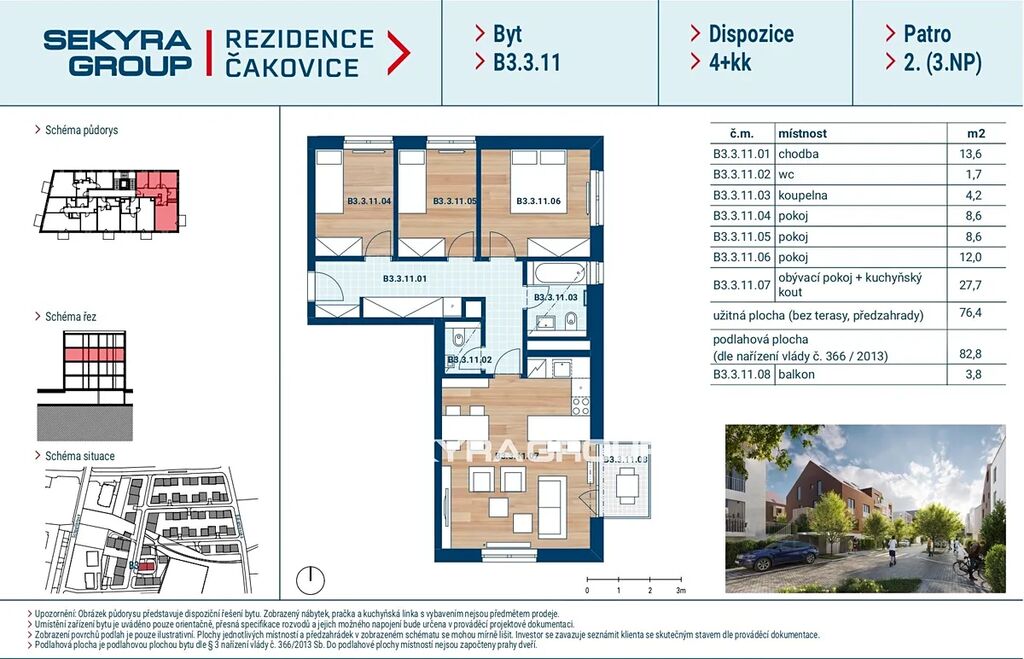 Dovolujeme si Vám nabídnout k prodeji byt 4+kk o výměře 83,4 m² s balkónem 3,8 m² v rezidenčním projektu Rezidence Čakovice, etapa B.