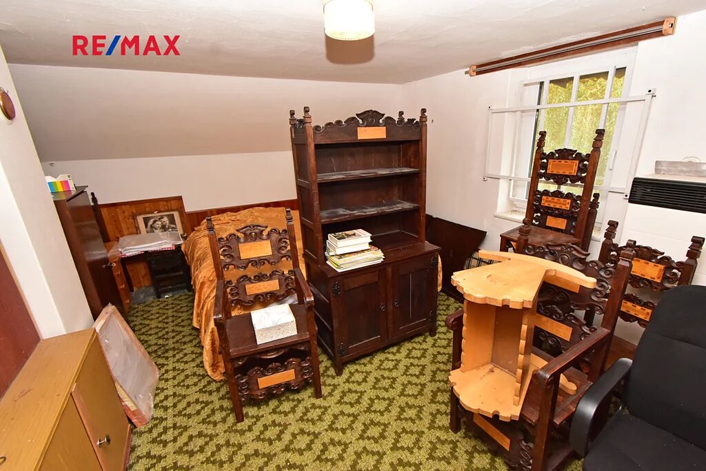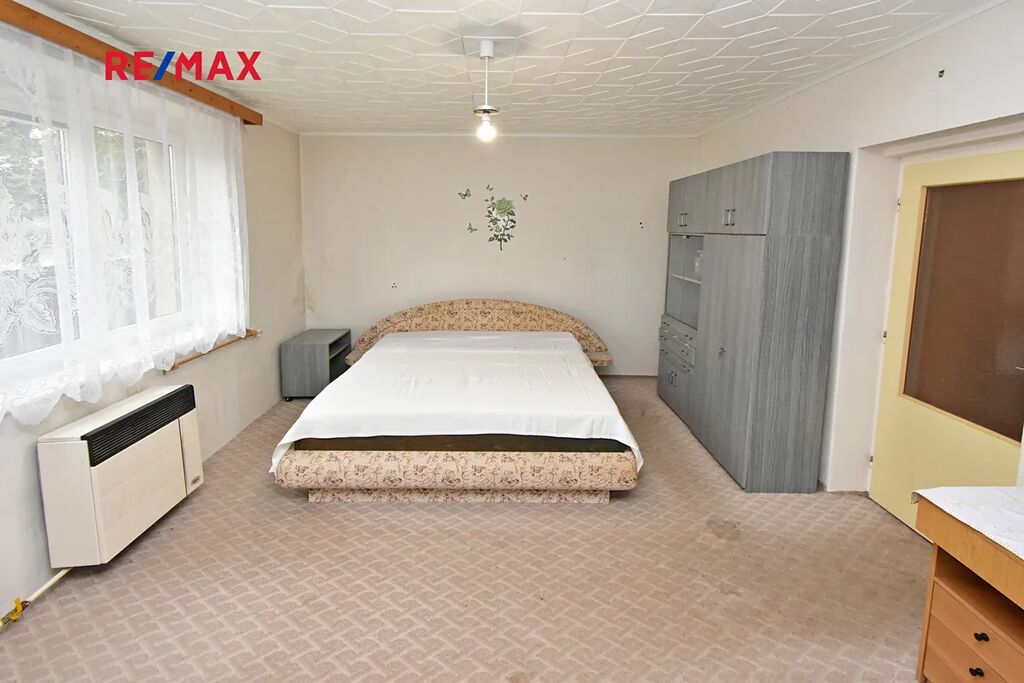 Rodinný dům Vám nabízí prostornou vstupní chodbu/zádveří, samostatnou toaletu, technickou místnost, dále chodbu se vstupem do obývací části (s jídelnou a krbem, 19 m2) a ložnici (19 m2) s oknem do dvora a ulice. Z chodby je vstup do koupelny (3,8 m2), dále do pravé části domu, kde se nachází kuchyně vč. špajzu, ložnice (18 m2), komora/sklad, větší spíž. V podkroví nalezneme ložnici (18,5 m2), dvě chodby, sklad (9 m2) a krásnou prostornou půdu (78 m2). Rodinný dům má dva vstupy, prostor pod schodištěm s čerpadlem pro studnu. U rodinného domu se dále nachází dva dřevníky.