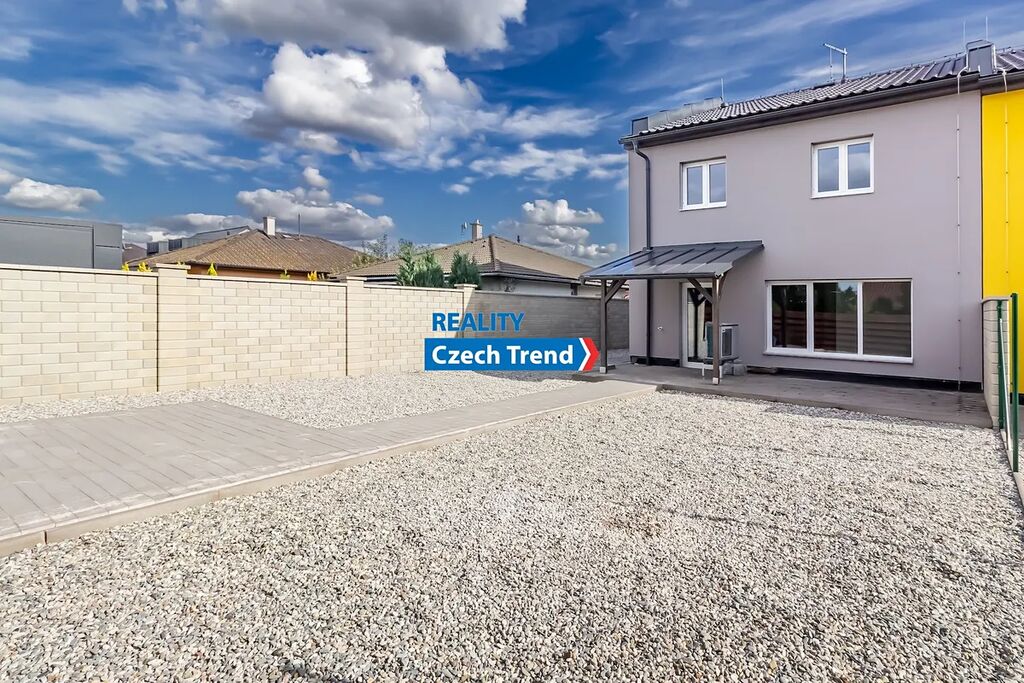 Hledáte klid a komfort? Nabízíme Vám k pronájmu zcela nový moderní řadový rodinný dům 4+kk s garáží a venkovním parkovacím stáním pro dvě auta v rámci developerského projektu v obci Bystročice nedaleko Olomouce. Velmi nízké nájemné je nižší, než nájemné srovnatelně velkého bytu s garáží v Olomouci. Měsíční zálohy na elektřinu vč. topení jsou cca 4.000,- Kč, na vodu cca 1.000,- Kč. Celková velikost pozemku k domu je včetně zastavěné plochy 234 m². Dům je postaven z cihel Porotherm, okna trojskla, značkové armatury Hansgrohe. V přízemí domu je vstupní chodba, koupelna se sprchovým koutem, umyvadlem, toaletou a přípojkou na pračku, technická místnost s tepelným čerpadlem o výkonu 8 kW, značky Nibe F 2040-8 + VVM 225 s bojlerem o obsahu 180 l, kuchyňský kout s kuchyňskou linkou s vestavnými nerezovými spotřebiči a přípravou na myčku, obývací pokoj s francouzským oknem a vstupem na částečně zastřešenou terasu a schodiště do patra. V patře domu jsou tři ložnice, šatna a koupelna s vanou, umyvadlem, toaletou, bidetem a přípojkou na pračku. V celém domě včetně garáže je na podlaze dlažba s teplovodním podlahovým vytápěním. Dům je připojen na optický kabel, rozvody internetu a TV signálu jsou v každém pokoji.