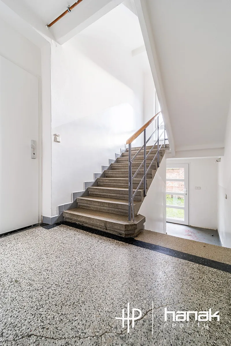Předmětem prodeje je byt o dispozici 3+kk s balkonem o celkové užitné ploše 98 m2 ve 3.NP malého cihlového domu. Dům prošel revitalizací fasády, krytiny a výměny oken za plastová s izolačním dvojsklem.